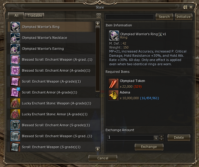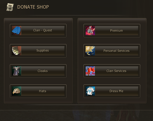 Top A weapons: Adena / crystals + special items from Primeval quests